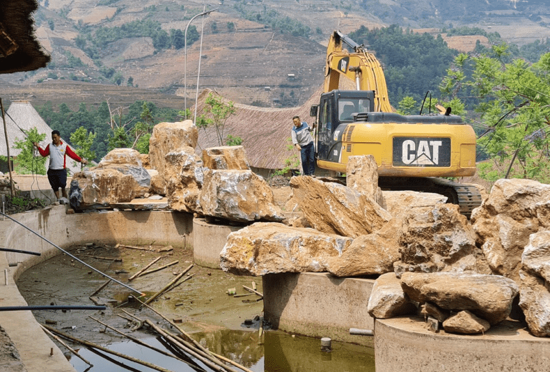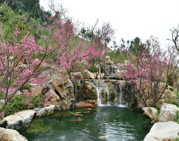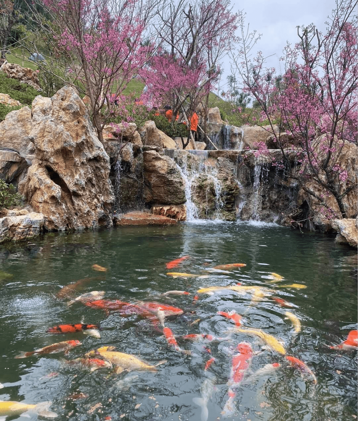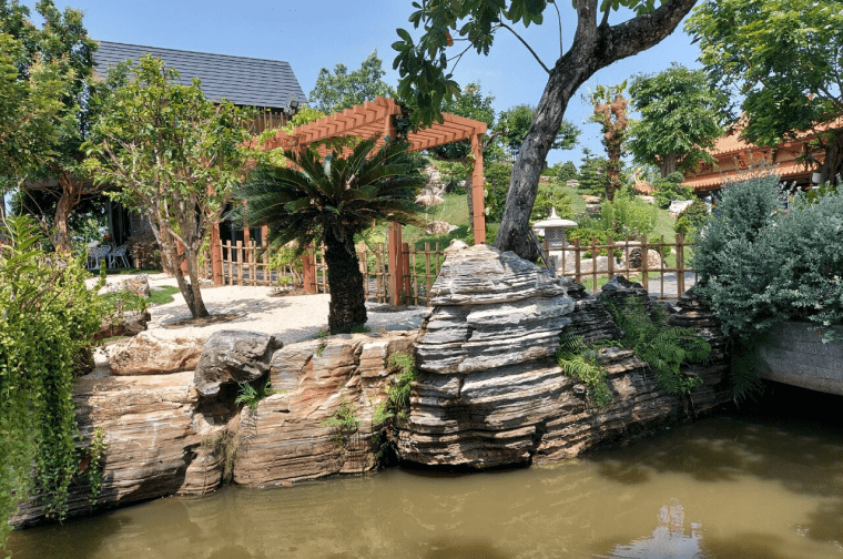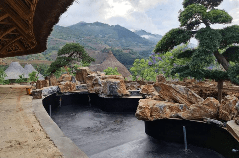 Saigon Stone tạo ra một sân vườn, thác nước, hồ cá, tại Yên Bái. Công trình sử dụng đá tảng, cây cảnh và những thứ cần thiết để tạo nên một hồ cá đẹp tựa tiên cảnh.