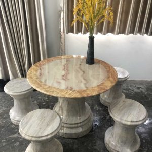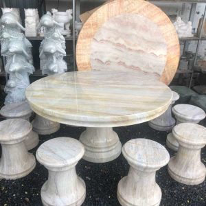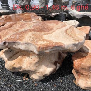 Bàn ghế đá tự nhiên được điêu khắc hoàn toàn từ đá tự nhiên, nguyên khối có chọn lọc. Những bộ bàn ghế đá tự nhiên được tạo nên từ chất liệu đá hoàn toàn tự nhiên nên mang đến vẻ đẹp vô cùng ấn tượng, được chạm khắc tỉ mỉ với nhiều hình mẫu khác nhau phù hợp phong thủy tạo nên vẻ tao nhã, tinh tế của đá tự nhiên. Sản phẩm được nghệ nhân gia công tỉ mỉ, công phu. Các đường vân đá nổi rõ mang đến vẻ đẹp tinh tế, sắc nét, bề mặt bóng, nhẵn mịn. Các mẫu bàn ghế đá có rất nhiều kích thước và hình dáng khác nhau có thể mang đến cho người dùng sự đa dạng trong lựa chọn để phù hợp với sở thích, nhu cầu sử dụng và không gian.